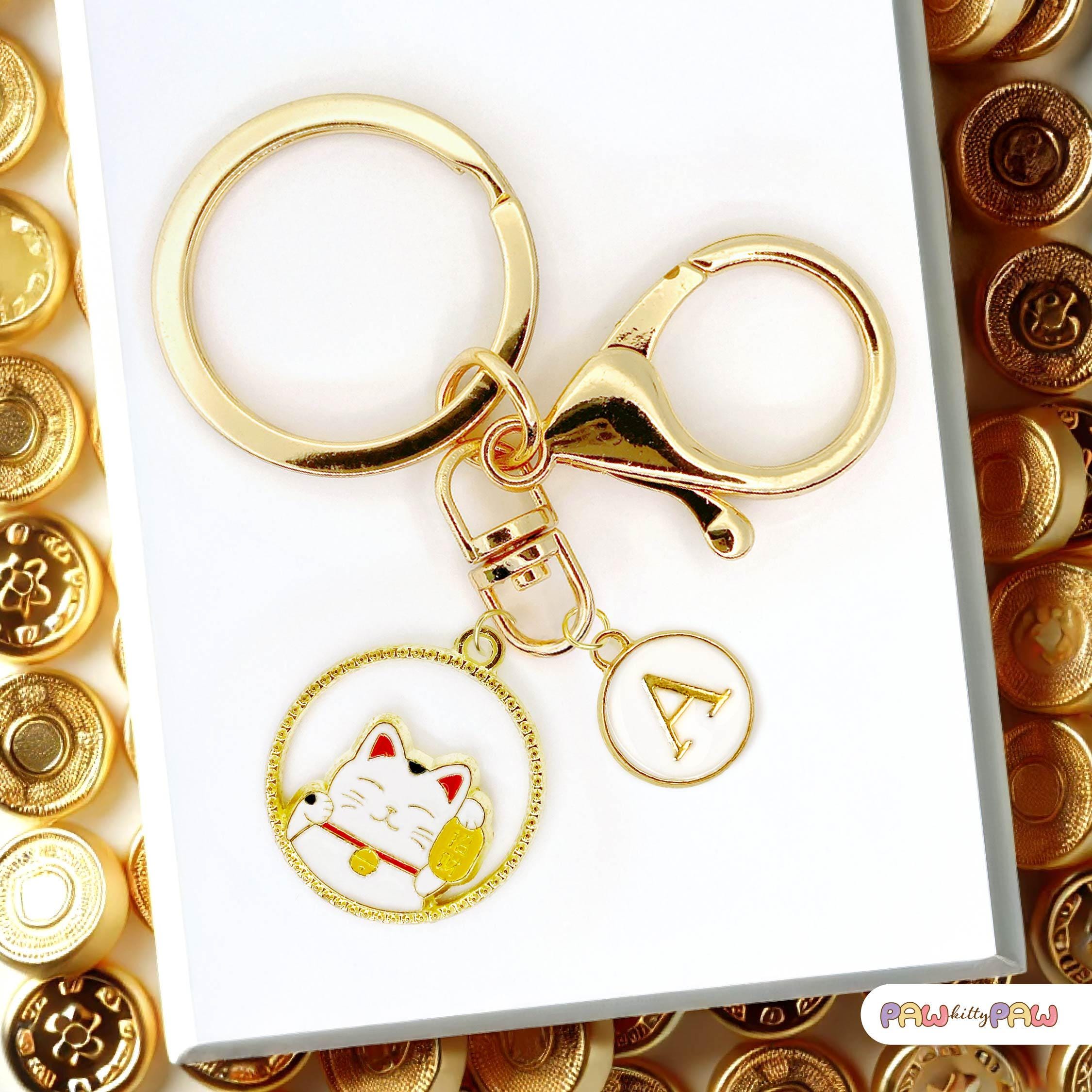 ✨ Invite good fortune and positive vibes into your daily routine with this elegant gold circle lucky cat keychain! This beautifully framed maneki-neko design brings a modern twist to a traditional charm that symbolizes prosperity and happiness 🍀🐾