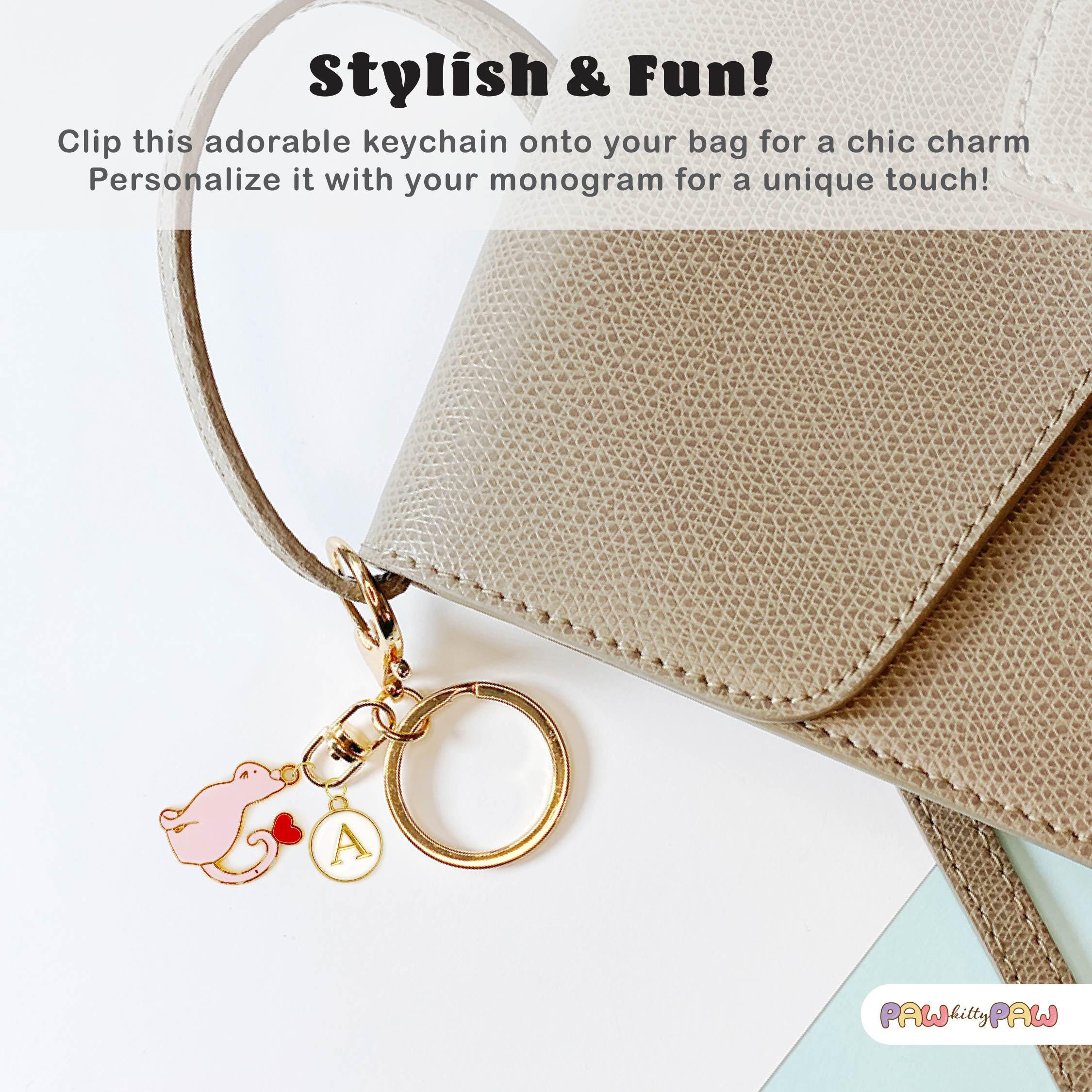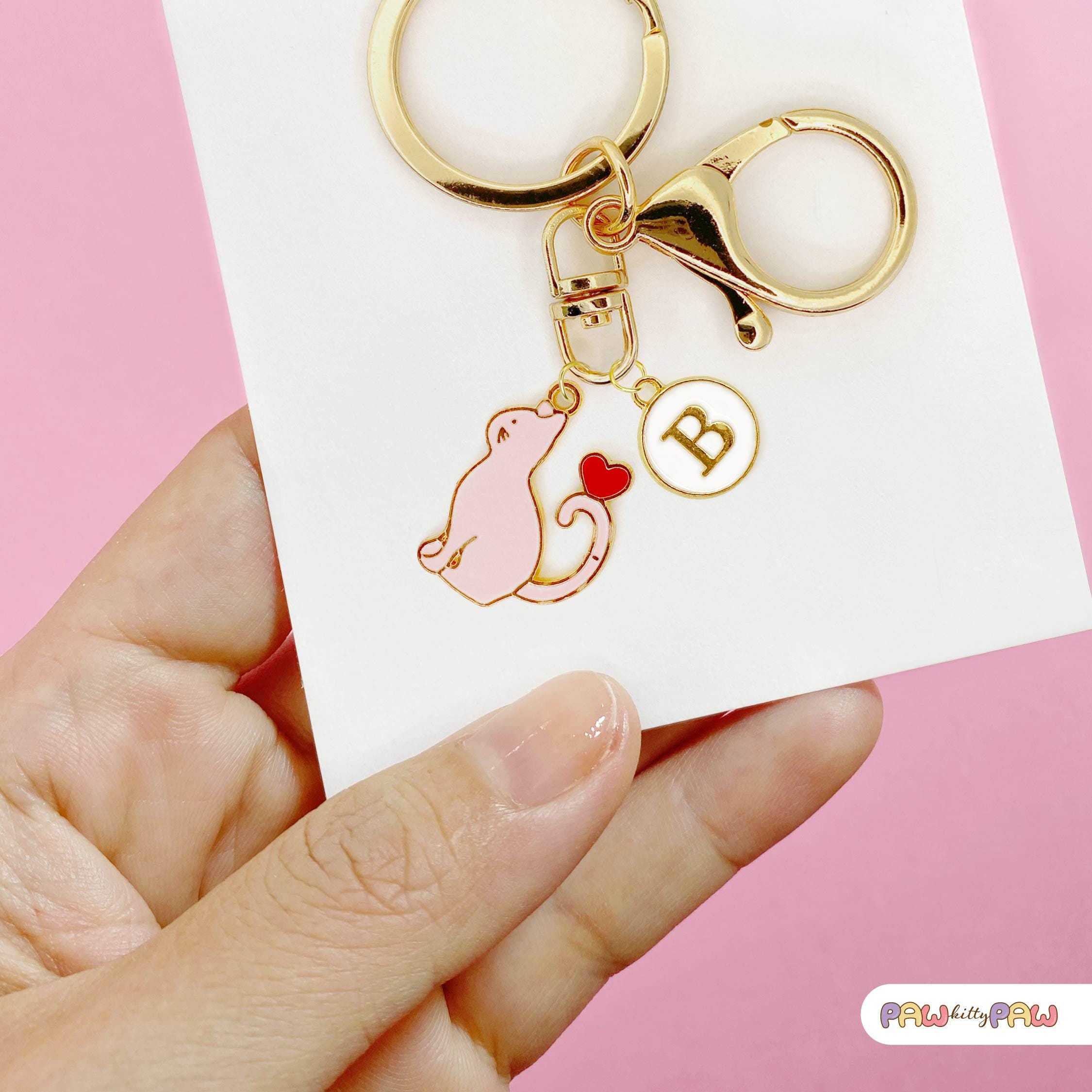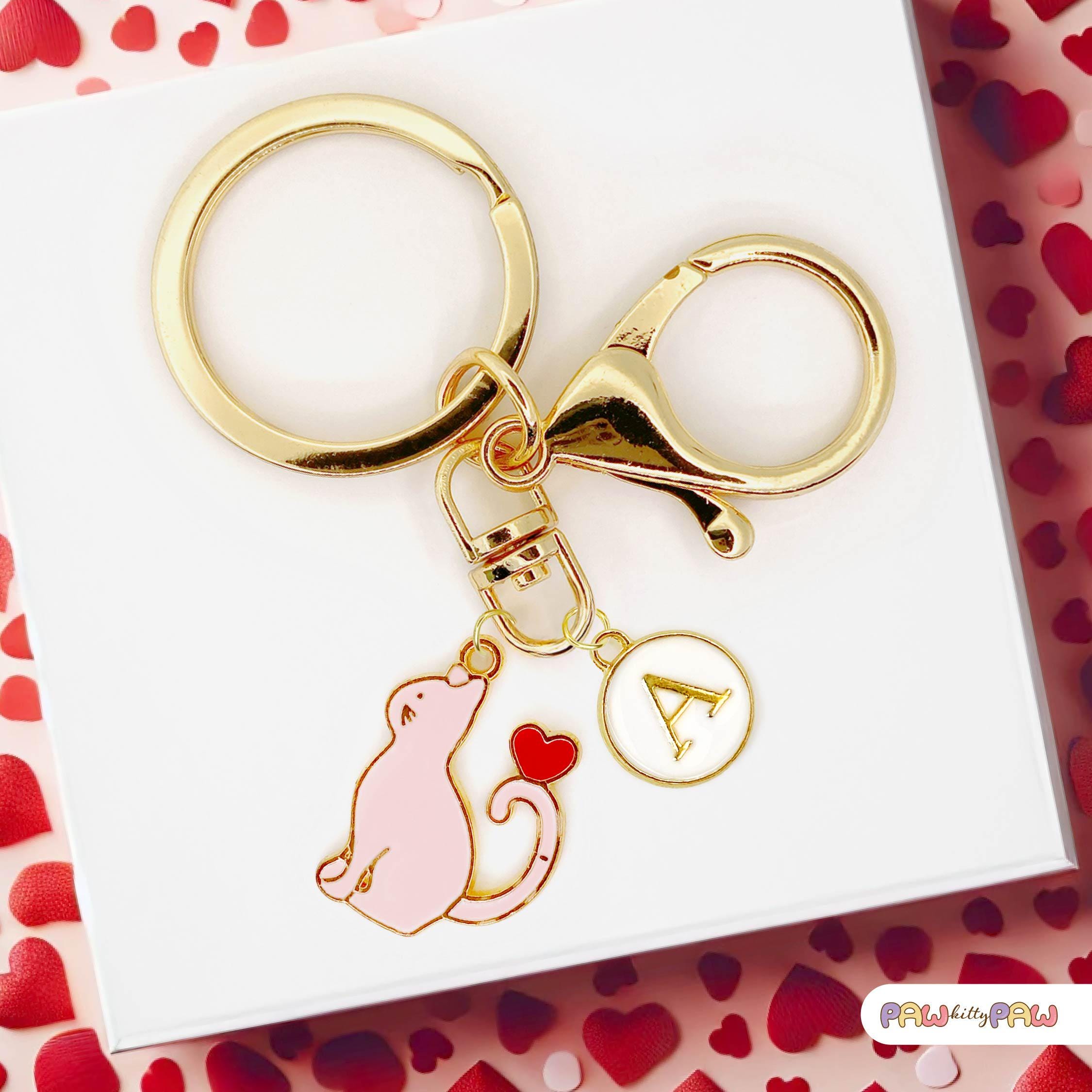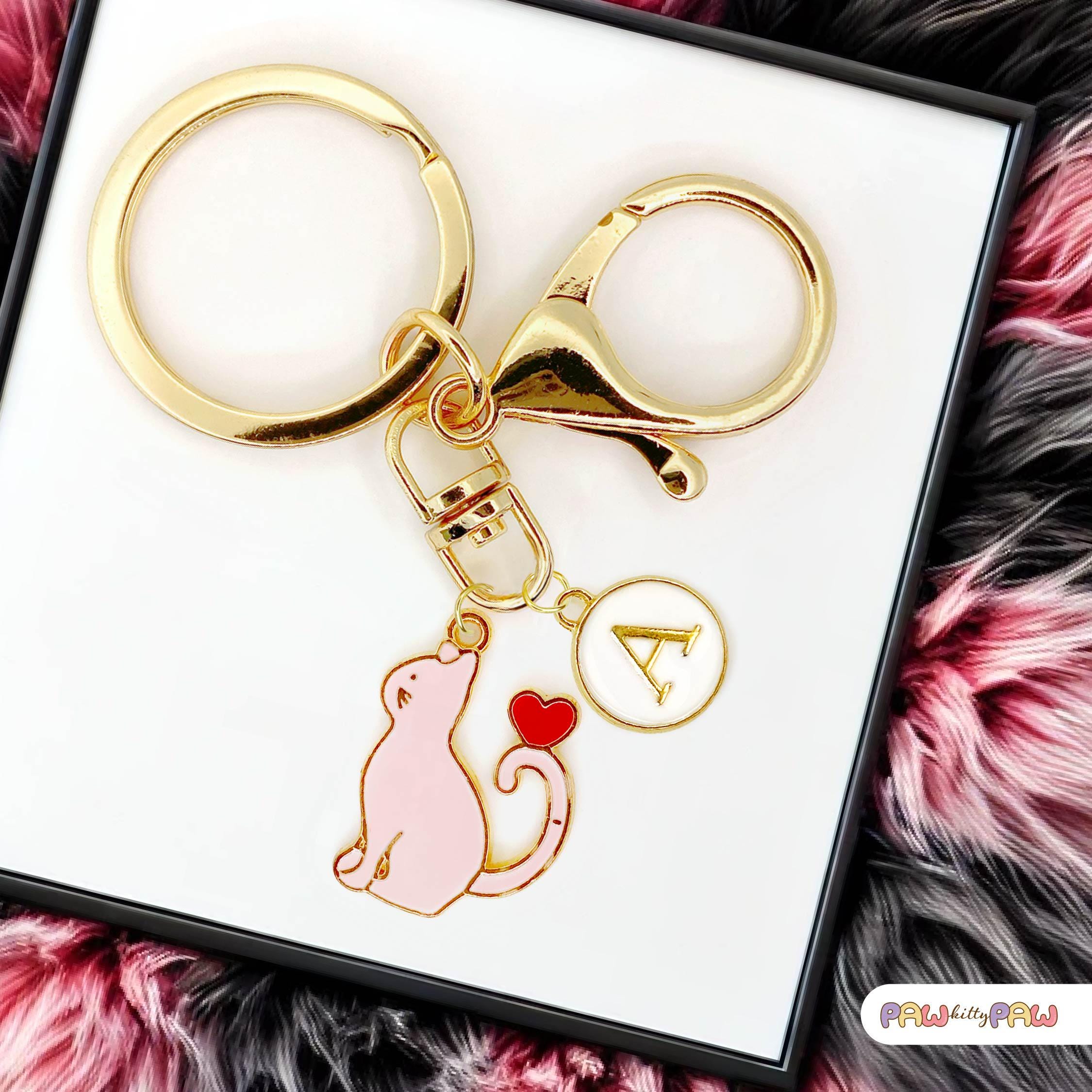 Purr-fectly adorable and full of love! 💖 This pink cat keychain is a cute kawaii cat accessory featuring a pastel pink enamel kitty with a heart tail cat charm, plus a customizable personalized clip with your chosen initial. Whether you're searching for a romantic cat gift or a thoughtful cat lover gift idea, this playful love themed keyring brings a little sweetness to any bag or set of keys. It's a fun addition for any cat lady keychain collection, and also makes a sweet pet key holder to keep your keys easy to find.