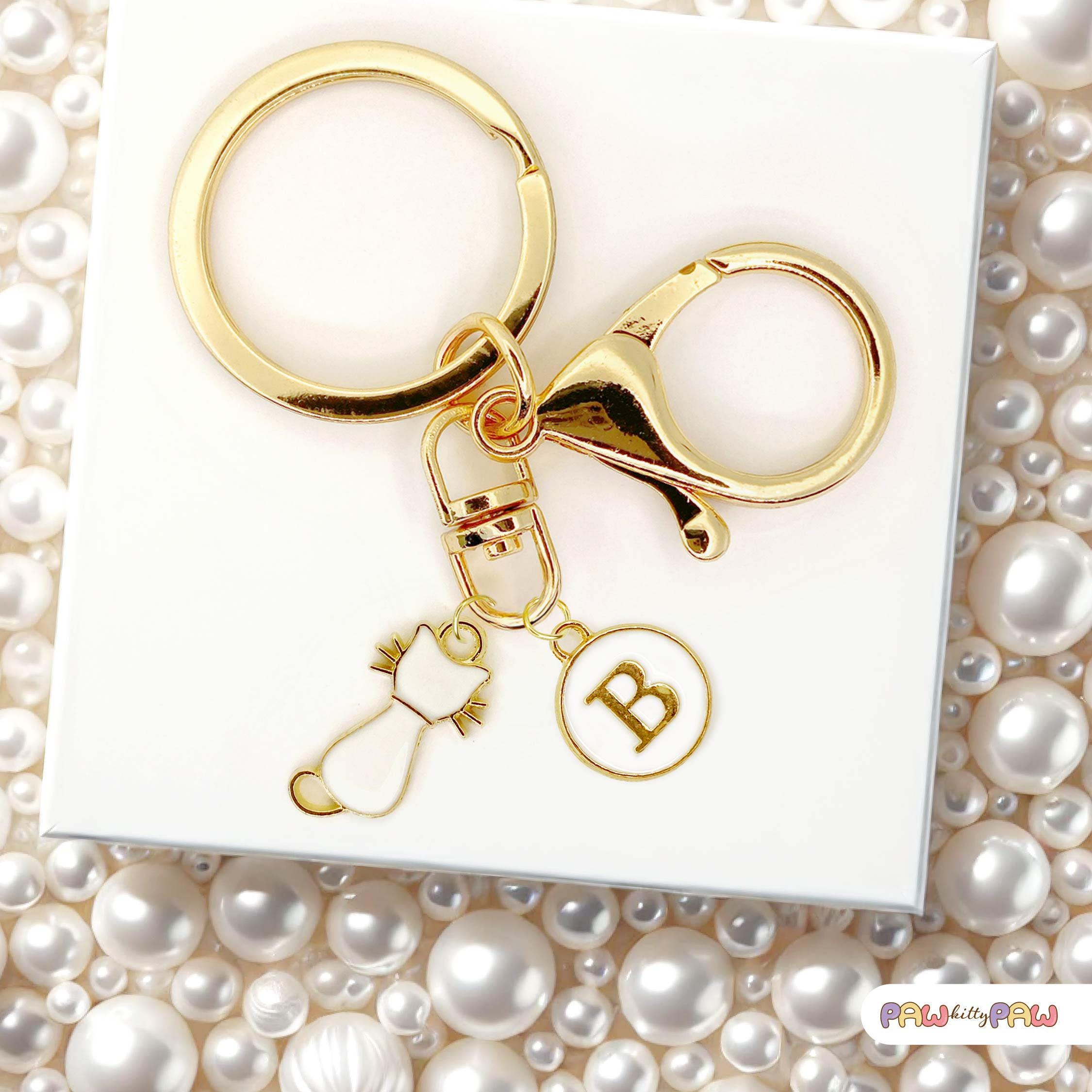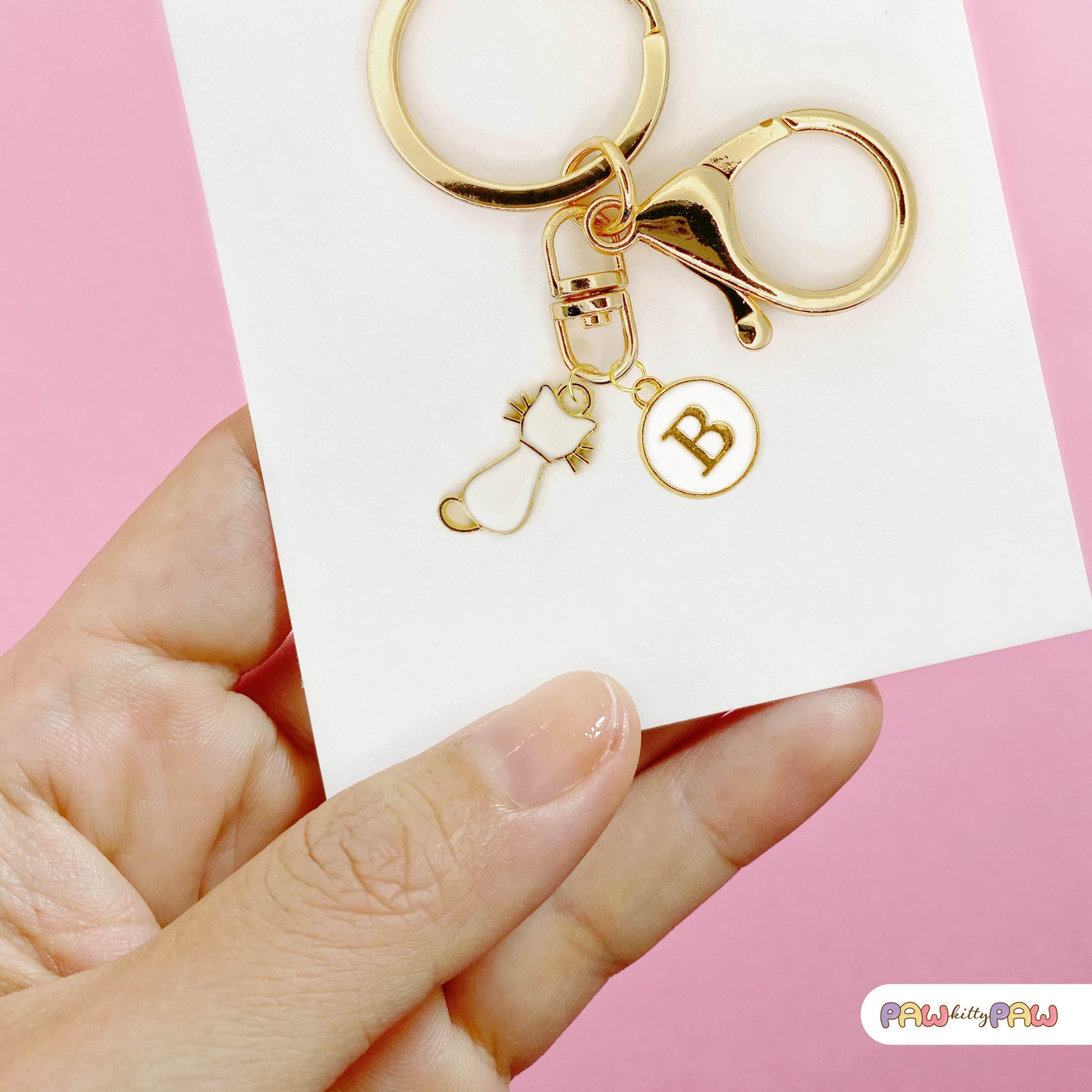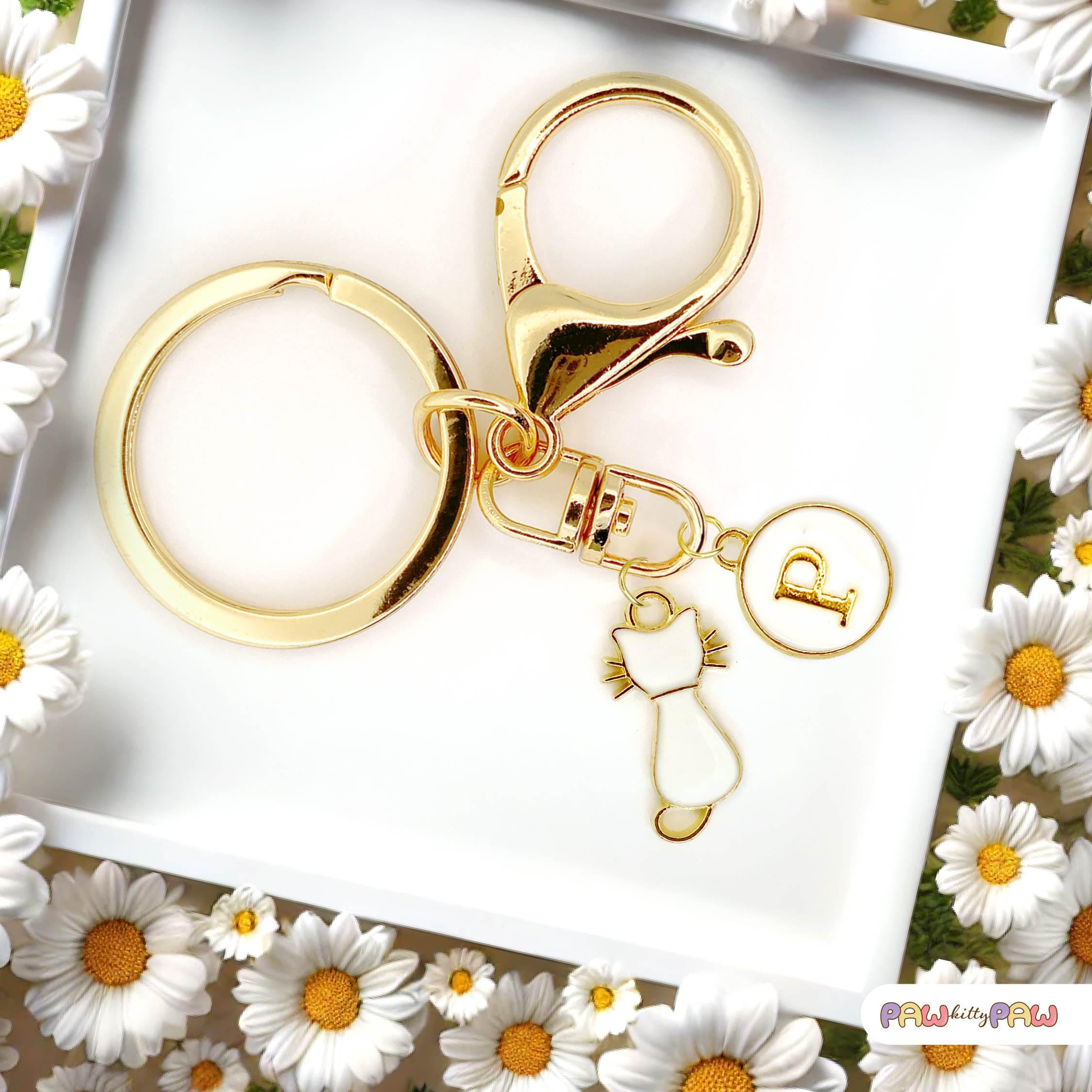 • 💌 Custom cat keyring with your choice of initial key charm or name tag