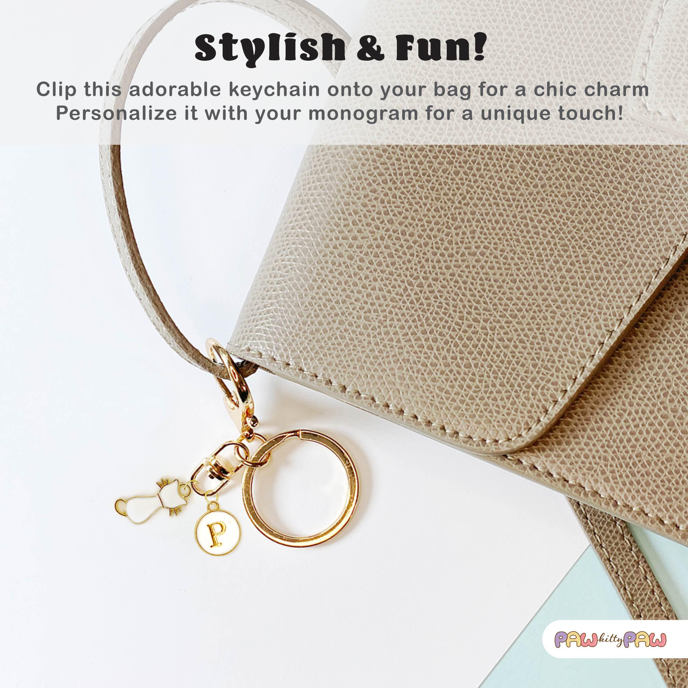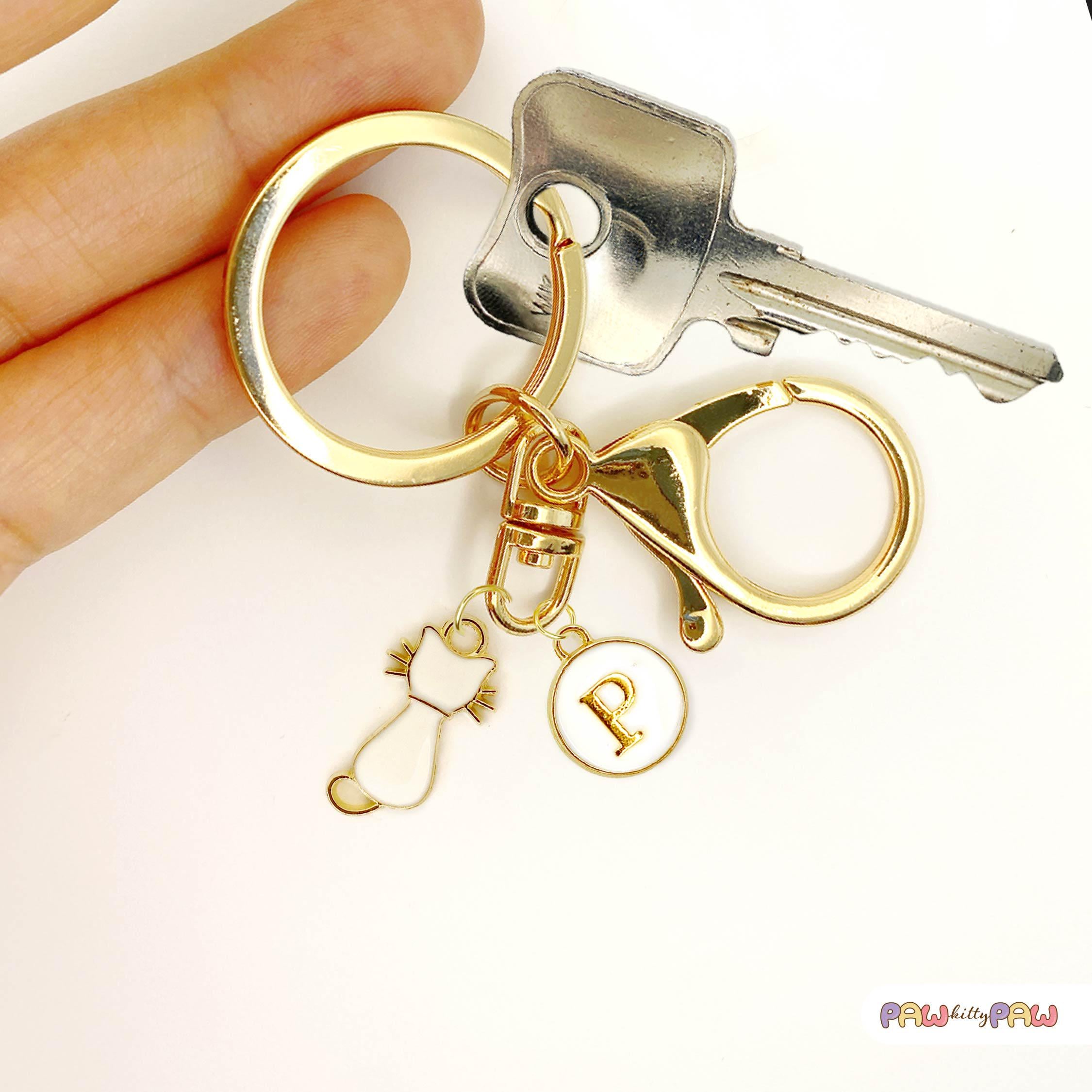 Looking for a chic cat gift idea or a special cat charm gift? Personalize your keychain with a custom initial key charm or a custom name keychain touch, making it perfect for a unique cat keychain custom present. Each piece comes with a sturdy gold ring and lobster clasp, so you can attach it to your keys, bags, or even as a zipper pull.