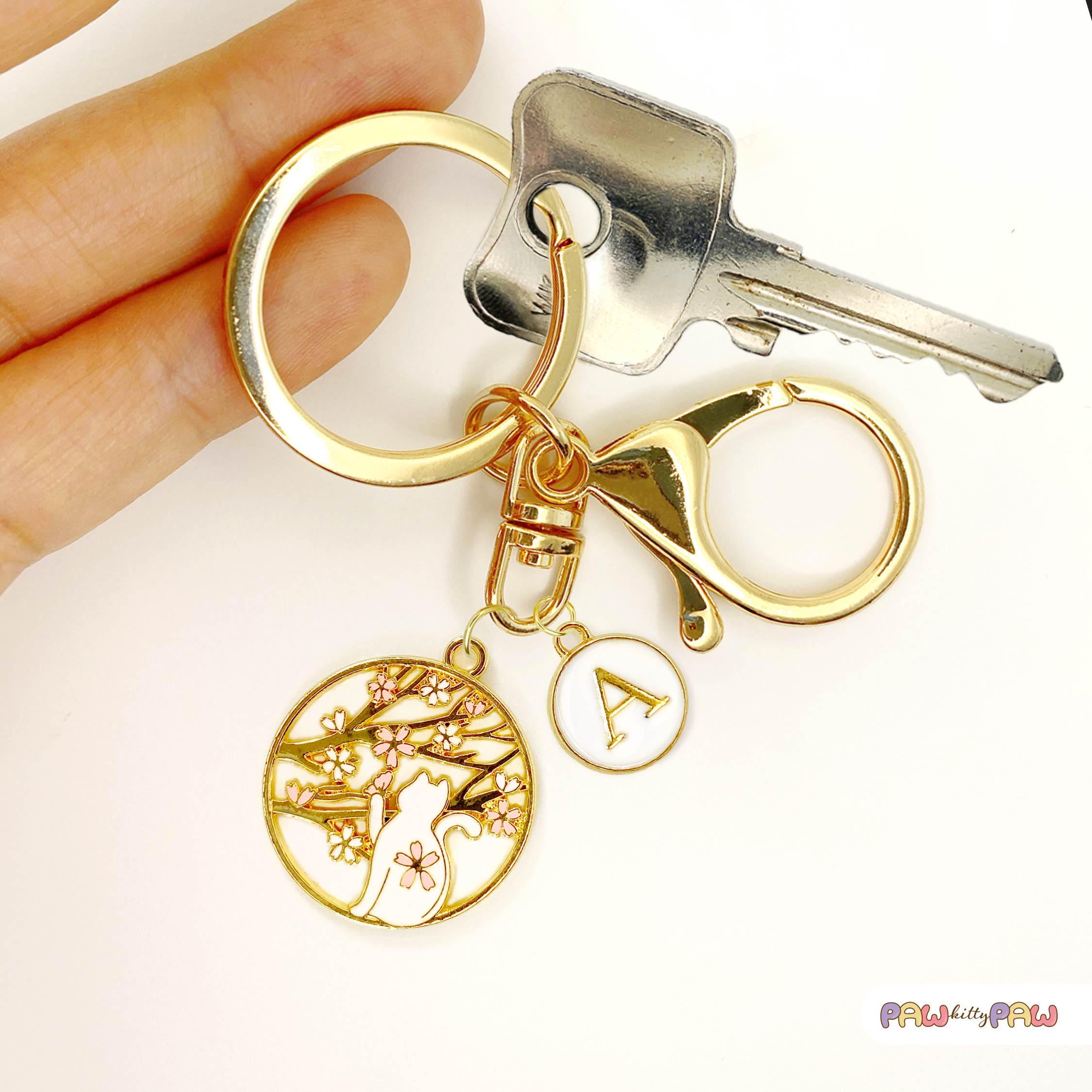 Looking for a charming accessory to brighten your day? This cute enamel keychain features a kawaii white kitty surrounded by delicate cherry blossoms, making it a delightful cherry flower cat accent to bring a touch of spring wherever you go.